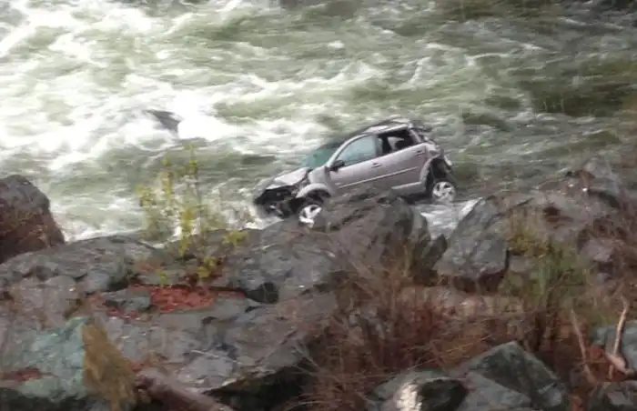 По ее словам, она не справилась с управлением на серпантине и скатилась, сделав несколько переворотов, прямо в горную речку.