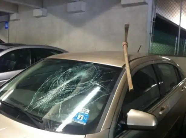 Сковородка в лобовом!)))Видимо жена узнала о косяках мужа!)))