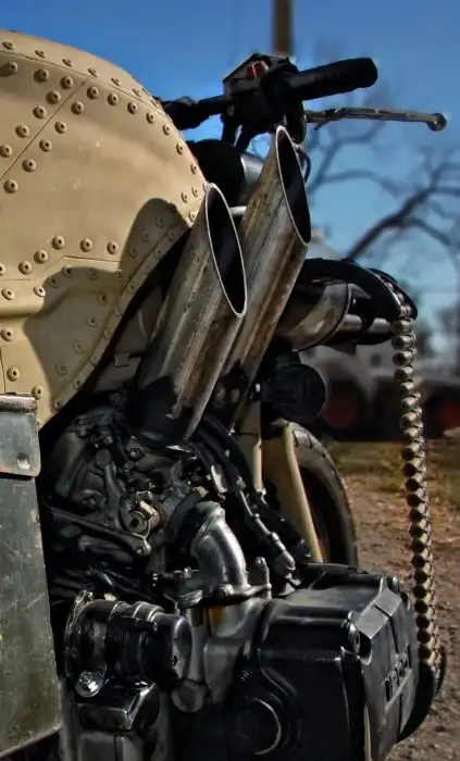 Это не выхлоп, это воздухозаборники для движка. Мне другое интересно - как с двух шестиствольных пулеметов стрелять? Он назад не поедет при такой-то скорострельности? Хотя калибр небольшой, но патрон-то винтовочный, 7,62.