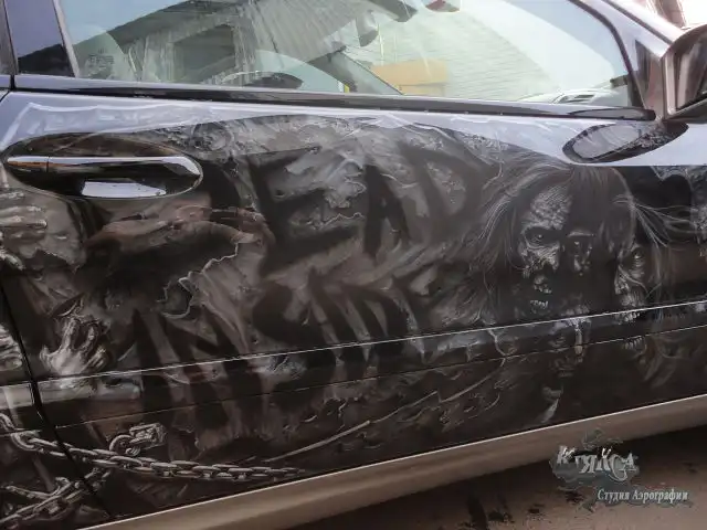 Похоже владелец этого Мерседеса настоящий фанат фильма "Ходячие мертвецы".