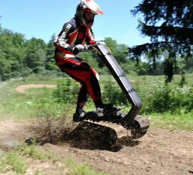 Это экстремальное транспортное средство под названием DTV Shredder было разработано еще в 2010 году, но довольно скоро оно поступит в свободную продаже. Что же в нем такого необычного? Состоит этот гусеничный самокат из двух гусеничных траков, соединенных с форсированным двигателем внутреннего сгорания с объемом в 200 кубических сантиметров от Honda и способен развивать скорость в 48 километров в час. Что самое интересное, для этого устройства просто не существует непроходимых дорог, ведь оно способно преодолевать уклоны до 40 градусов!