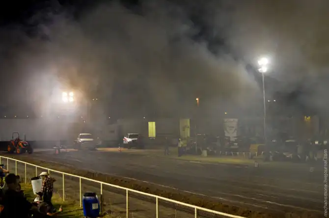 У некоторых тоже возникали проблемы с двигателями. Этот трактор имел проблему с гидравлическими шлангами и залил трассу маслом. Гонку пришлось остановить на некоторое время для очистки трассы. Кстати, если в течении заезда у гонщика отваливается что-либо от трактора, его сразу дисквалифицируют. А нефиг.