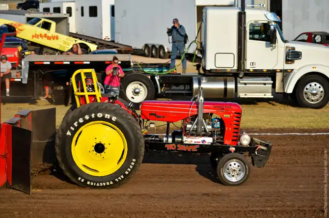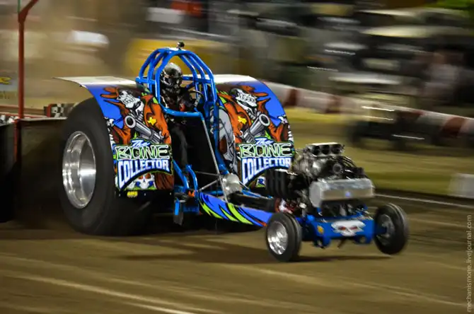 Следующий класс – профессионально модифицированные тракторы. Тут по сути дела уже нет ограничений – и нитро-двигатели, и 8.5-литровые двигатели, и колеса любые до 30.5×32. Единственное ограничение – нельзя ставить на трактор несколько двигателей.