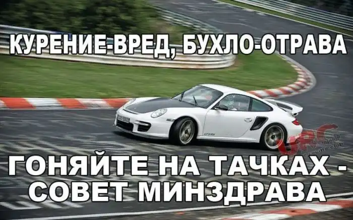 "Курение-вред, бухло-отрава, гоняйте на тачках-совет минздрава..." "... - так будет гораздо быстрее"