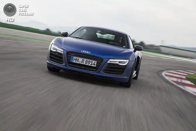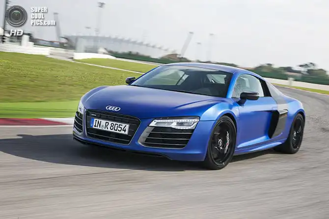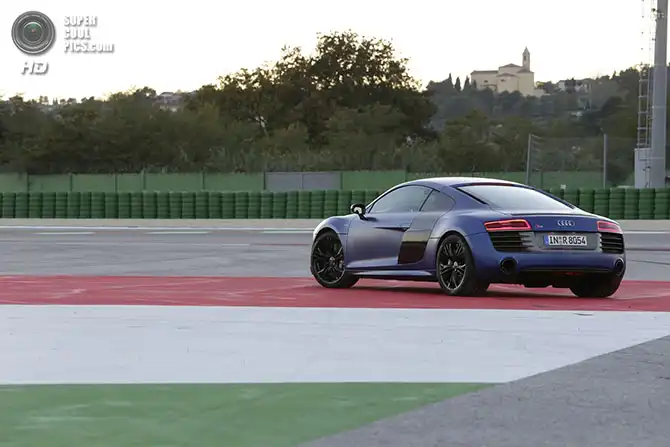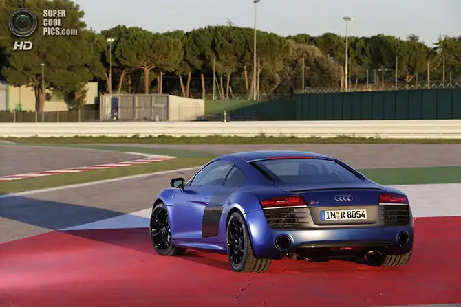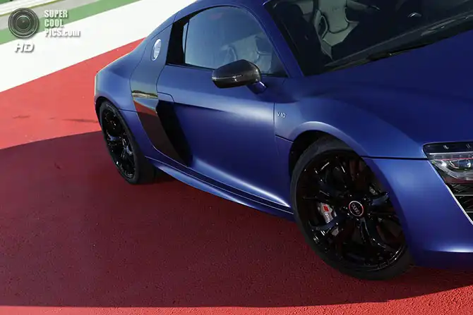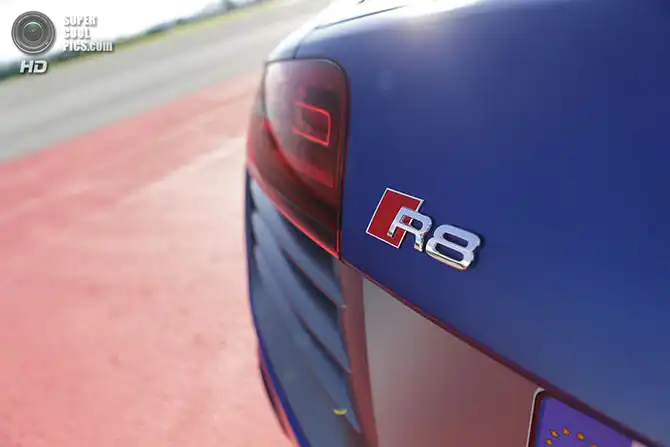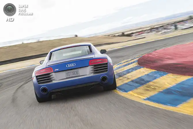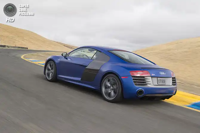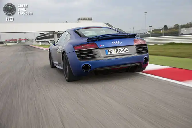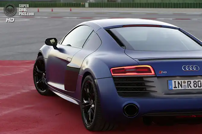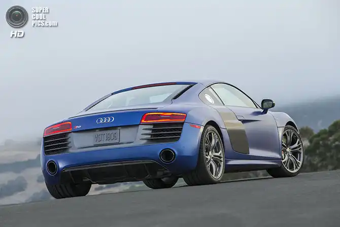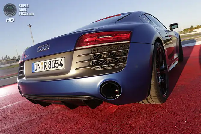 Audi R8 V10 plus Coupé выглядит крайне атлетично. Характерные боковые воздухозаборники и задний диффузор выполнены из карбона.