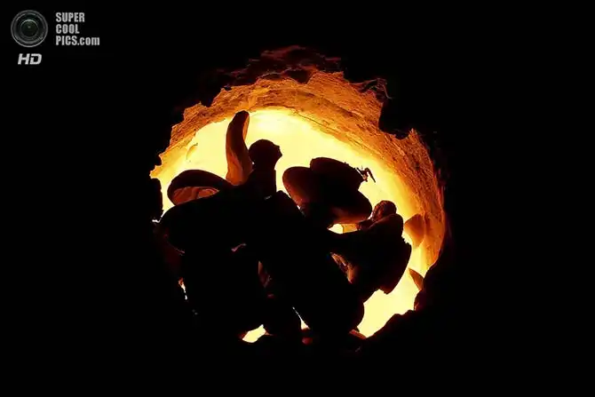 Работник Polycast Limited Рональд Парр плавит сталь перед заливкой на форму.