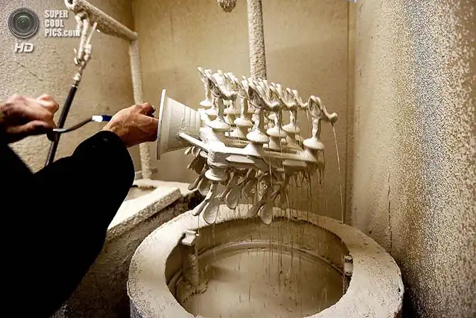 Рональд Мур охлаждает восковые формы.
