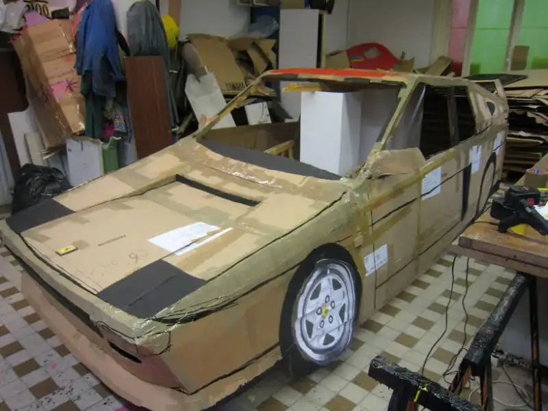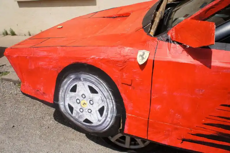 Многие мечтают о том, чтобы прокатиться за рулем Ferrari, но не у каждого есть кругленькая сумма на такую дорогую игрушку. Художник Бенедетто Буфалино для себя решил эту проблему - он склеил из картона чехол для своей маленькой машинки в виде легендарного спорткара Ferrari Testarossa и разъезжает с ним по городу. Самоирония - это здорово