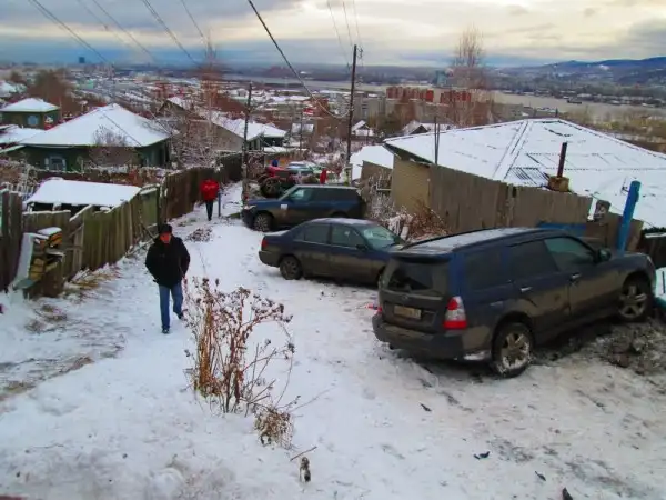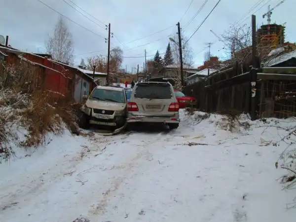 Эпическое ДТП произошло в Октябрьском районе Красноярска около 8 утра. Дело в том, что дорога, идущая по крутому спуску через частный сектор, популярна среди хитрых водителей, едущих в центр города, но не желающих стоять в традиционной утренней пробке.