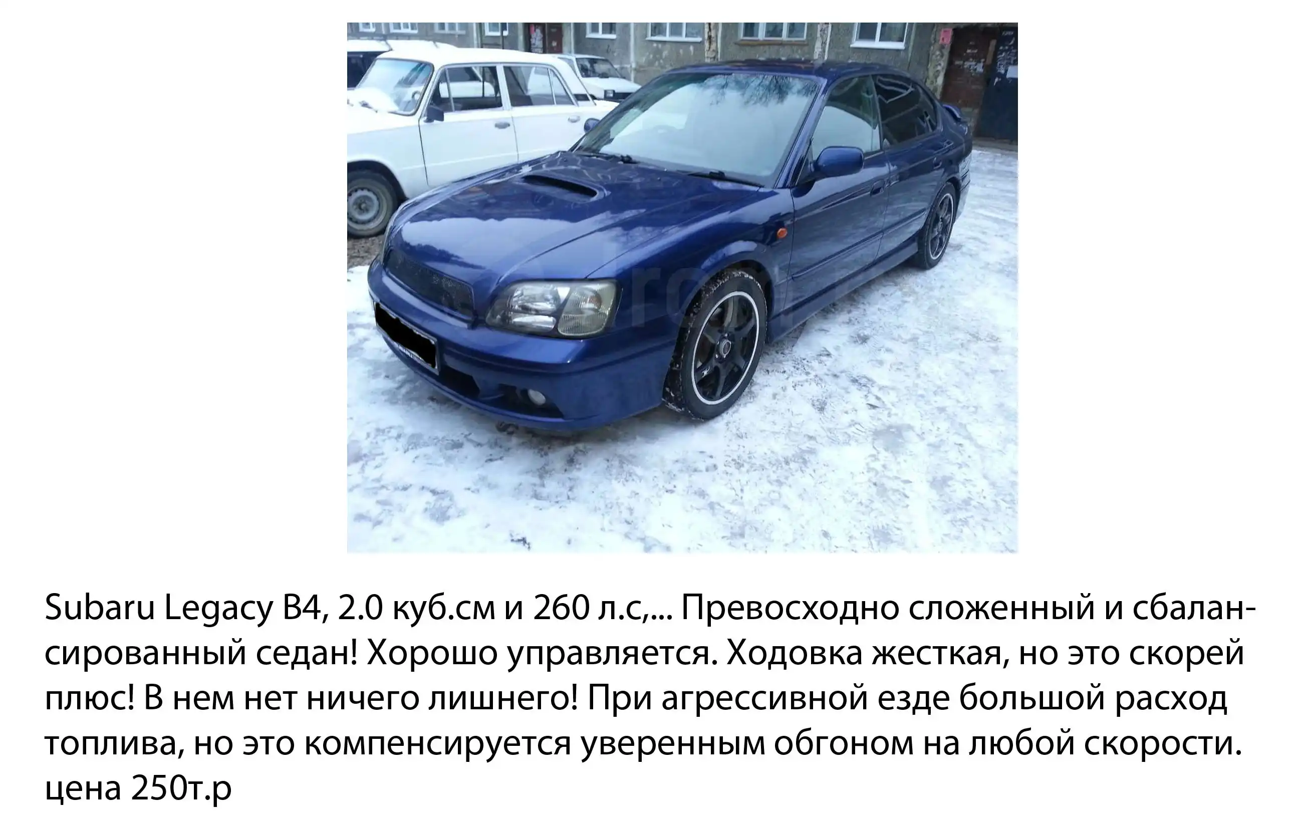 Все импортные тачки в этом посте праворукие - уже минус. Года этих тачек приличные по сравнению с ладами - тоже минус. Обслуживание субаря, марка, виндом в копейку нефиговую влетит, на эти деньги нашим ладам можно сделать офигенный тюнинг. Все импортные тачки заднеприводные (если только субарь не 4wd), а лады переднеприводные. Можно до бесконечности перечислять те или иные недостатки.