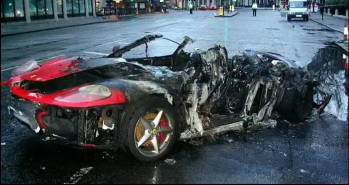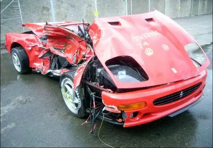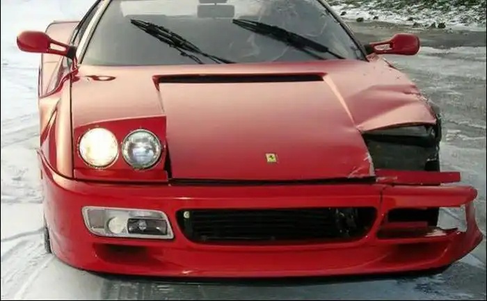 Коллекция разбитых дорогостоящих суперкаров марки Ferrari, глядя на которые просто сердце кровью обливается.