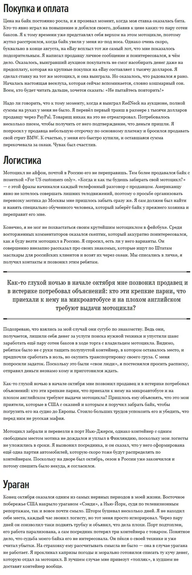 Один блоггер решил поведать нам о своем опыте приобретения мотоцикла на интернет-аукционе eBay. Думаю, вам стоит прочитать эту статью, если вы собираетесь в будущем пользоваться услугами подобных аукционов.