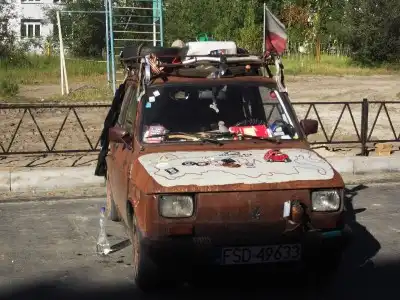 Сразу извиняюсь за качество, мобилка + не лучшее освещение. Сфотографировал я сие чудо в октябре 2013 года в Славутиче, Киевская обл. К сожалению пообщаться с хозяевами мне не удалось, их не было на месте. Но паренек из автосервиса сказал, что они едут уже назад в Польшу, машина исправна и они в наш город заехали в гости к знакомым.