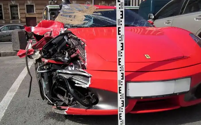 Хочется написать какие-нибудь громкие слова об адреналине в крови настоящего владельца Ferrari, но в этом случае виной всему снова стала… собака, перебегавшая Евгеньевскую улицу в Санкт-Петербурге. Водитель решил объехать животное справа, но уйти от столкновения с припаркованной Volvo не получилось. Итог – развороченная передняя часть итальянского купе и 4 209 922 рубля в предварительном заказ-наряде. Зато собака осталась жива.
