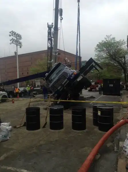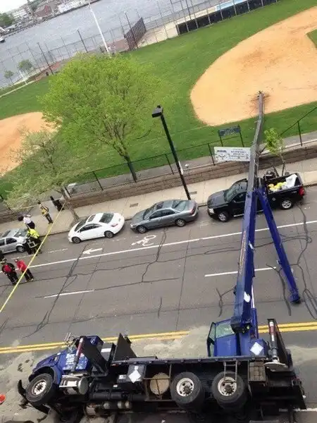 В Бостоне на бейсбольное поле упал кран. Оператор крана доставлен в больницу - больше никто не пострадал. Причина падения устанавливается. Одна из версий - подвела подпорка. Кроме крана досталось пикапу, припаркованному прямо на линии падения. Судя по всему, придется переделывать в кабриолет.