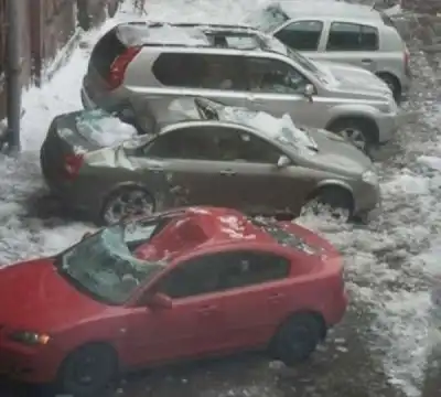 Град не щадит ни дорогие, ни дешевые автомобили