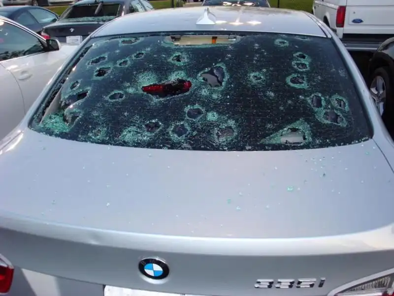Ни один здравомыслящий американский водитель не пренебрежет страховкой от погодных условий. У них там жестко - не ураган, так град. И они не жалеют ни дорогие, ни дешевые автомобили. И, к слову, оставаться в машине, когда с неба начинает сыпаться лед, не рекомендуется.