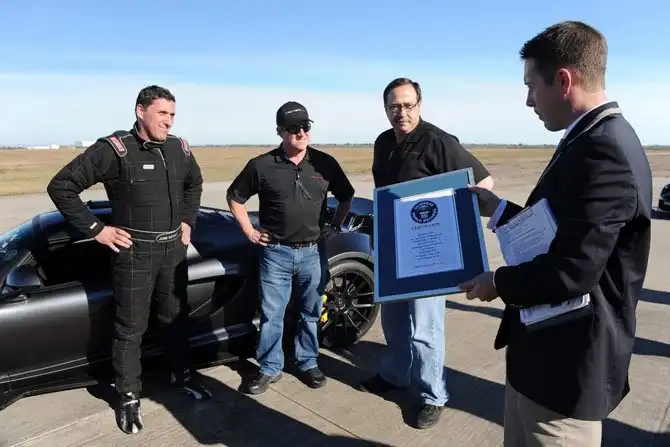 Не так давно, в феврале 2014 американскому пилоту-испытателю Брайану Смиту (Brian Smith) удалось установить новый рекорд скорости на серийно выпускающемся автомобиле: он разогнал купе Hennessey Venom GT до 435.3 км/ч.