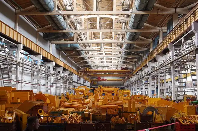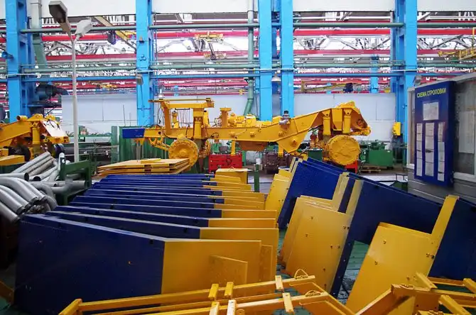 Обзор начинается с монтажно-сборочного цеха №1. Я как понимаю, это самый старый из имеющихся цехов. Здесь находится конвейер по сборке 40-тонных самосвалов, а также вспомогательные производства.