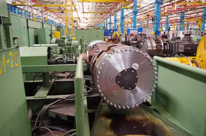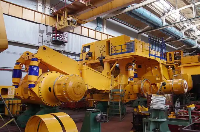 Вот эта прелесть в собранном состоянии весит 40 тонн! 40 ладокалин! Как она перемещается по цеху, можно увидеть на следующем снимке.
