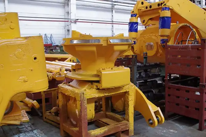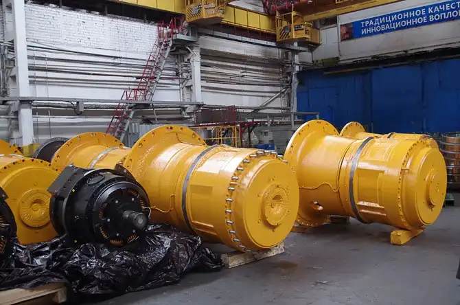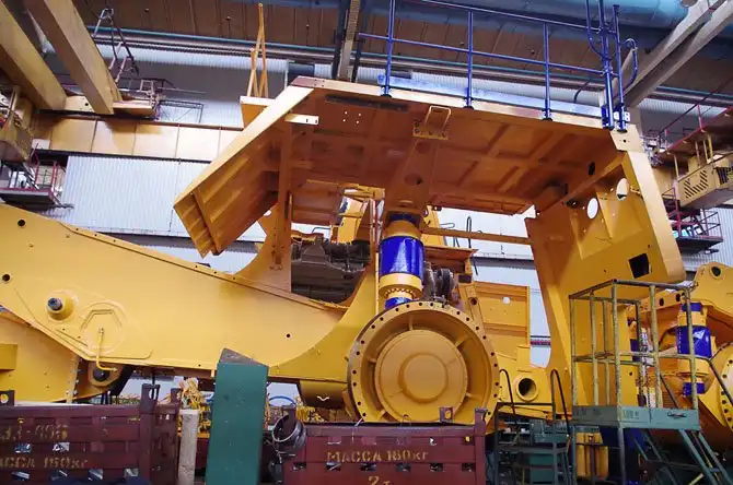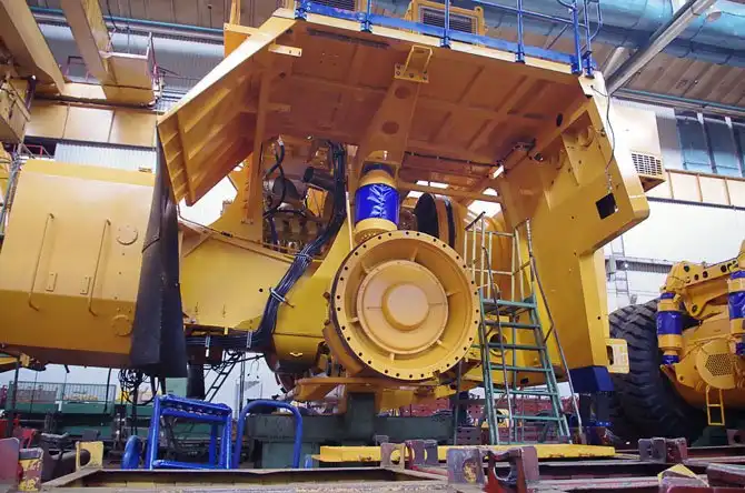 Одними из последних ставятся гидронасосы, если я правильно определил этот агрегат. На гидронасос возложены функции рулевого управления и подъёма кузова. Эти системы у БелАЗа объединены.