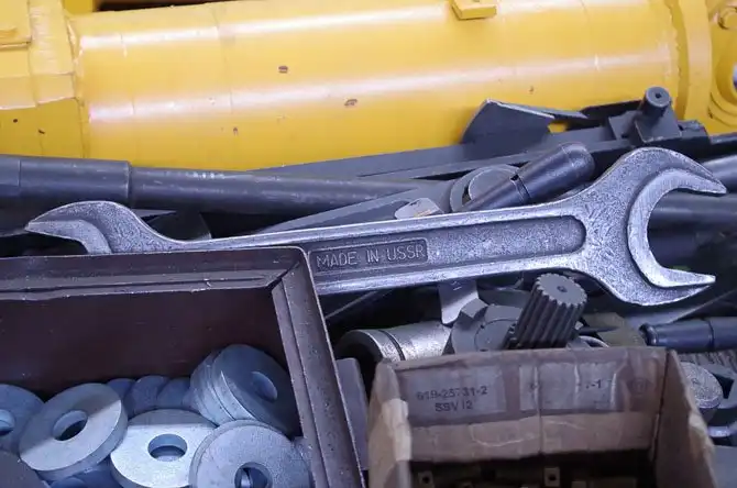 Теперь я в фотографиях попытаюсь показать путь от пустой рамы, до готового самосвала способного выехать своим ходом. В самом начале конвейера нашёлся вот такой ключик на 60. Незаменимый инструмент для сборки БелАЗов. Интересно, сколько же грузовиков было собрано с его помощью