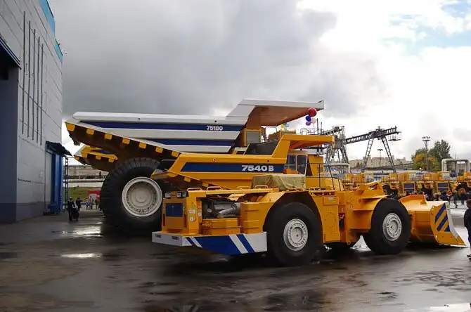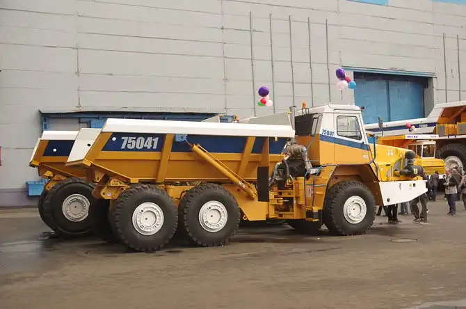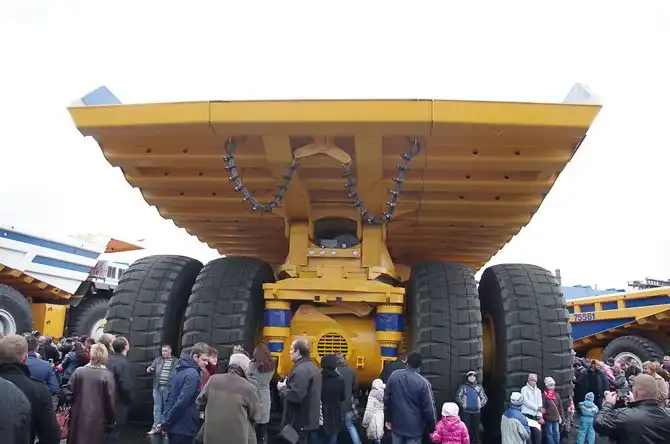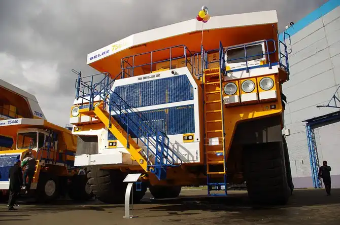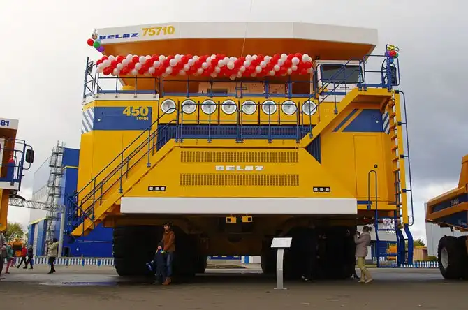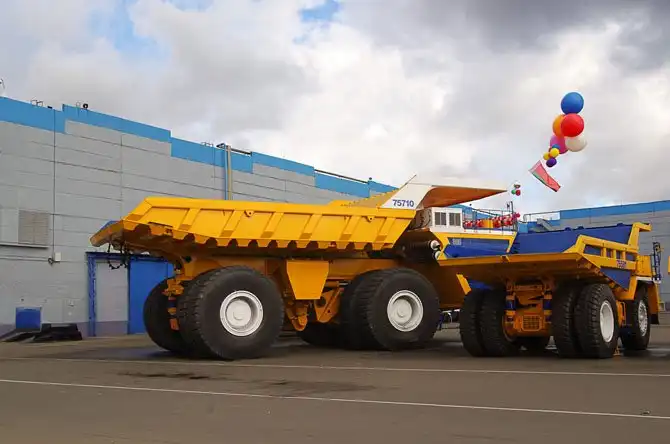 БелАЗ 75180 грузоподъёмностью 180 тонн и мощностью 2000 лошадиных сил.