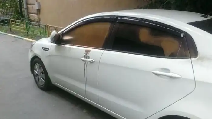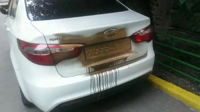 Вот такую печальную "картину" увидел утром владелец этого автомобиля, когда вышел из своего подъезда и собирался выезжать на работу. Ну, что тут еще добавить. Похоже, ритуал изгнания демонов из этой адской колесницы был успешно проведен ночью в то время, когда владелец спокойно спал в своей постели.