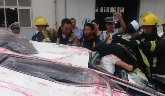 Это действительно жуткое ДТП произошло на днях в Китае, а его виновником стал грузовик с плохо закрепленным контейнером. По словам очевидцев, контейнер просто свалился с тягача прямо на проезжую часть, где в тот момент находилась небольшая малолитражка. Под таким весом легковой автомобиль в прямом смысле слова превратился в лепешку! Прибывшие на место происшествия спасатели даже не надеялись, что внутри мог остаться кто-то в живых, но...