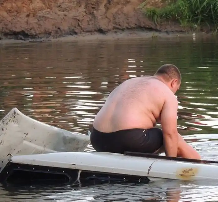 На минувших выходных парни решили съездить отдохнуть на природу. В самый разгар веселья, кому-то из них вдруг захотелось проверить, насколько крут отечественный УАЗик, на котором они, собственно, и приехали на природу. К сожалению, проверяли технические возможности УАЗика они не долго, зато теперь им всем точно известно, кокой глубины местный пруд ))