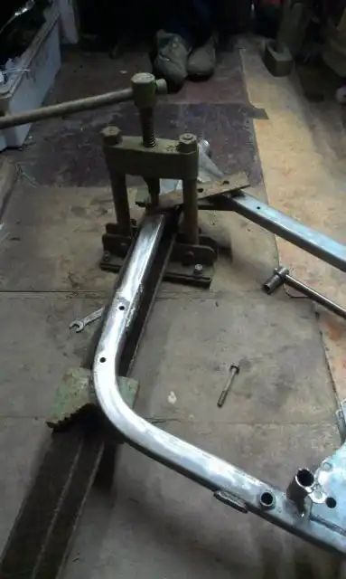 Предыдущий владелец использовал этот мотоцикл «и в хвост и в гриву», для поездок на рыбалку. Грязи на нём было немеренно. Разобрав второй мотоцикл я понял, что он ушатан ещё больше, чем первый, перед моими глазами оказалась треснутая и поведённая рама (это было самым большим огорчением за весь процесс восстановления). Делать нечего, нужно править и ремонтировать раму. На это ушло около 7 дней, а точнее вечеров. В итоге всё было сделано, рама выправлена, обварена накладками, зашпаклевана и покрашена. Начало положено.