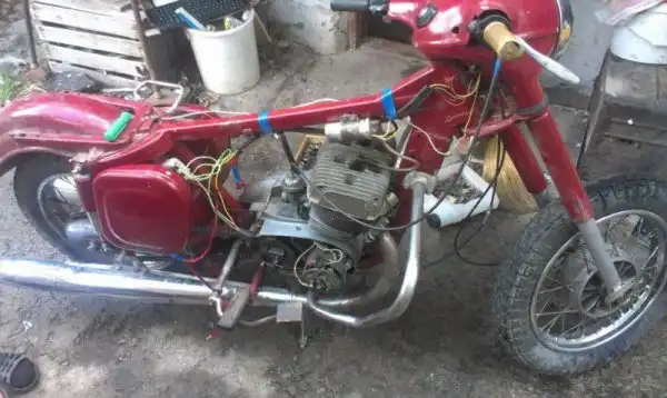 И вот он настал, я приехал к Гене и мы начали, на всё про всё мы потратили около трёх часов, попутно я узнал много секретов и тонкостей сборки конкретно этого двигателя, и торжественно поклялся никому их не раскрывать.(Один я вам раскрою — поршневой палец тютелька в тютельку пролазит в отверстие предназначенное для червячного механизма передающего вращение вторичной оси коробки передач на трос спидометра). Собрали мы двигатель, я был счастлив, оставалось отполировать крышки и можно было использовать. Я забрал двигатель, пока он стоял у меня в мастерской я полировал крышки. Позже началась сборка рамы, и женитьба двигателя с рамой.