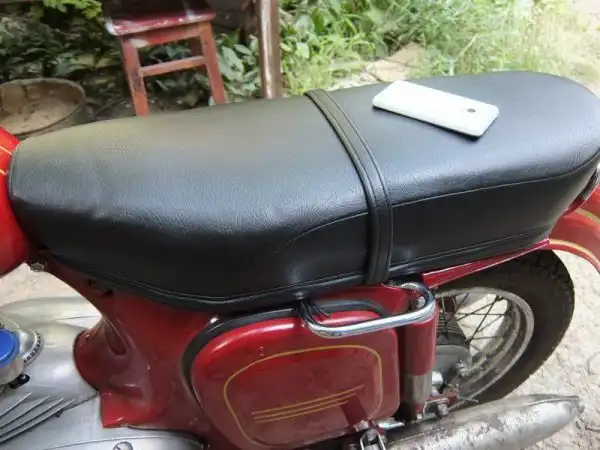 С сиденьем особых проблем не было, благо отлично сохранилась микропорка («поролоновая» основа сиденья) а вот станину (металлическую основу) пришлось ремонтировать. Отремонтировав станину, я созвонился с человеком и отправил всё это добро в Анапу, там дядя Коля должен был обшить мою сидушку по всем канонам Явы. Вообще обшив сиденья Явы спорный вопрос, за много лет было много разных модификаций, некоторый люди утверждают что были канты, некоторые шьют белыми нитками, в общем существует много споров, но все они затихают когда на свет появляется оригинальное сиденье тех времён, все замолкаю и пускают слюни глядя на неё. Дядя Коля в своем арсенале имеет практически все оригинальные сидушки и шьет так как надо. Сиденье обшили, и оно вернулось ко мне. На почту я приехал его забирать сидя на крыле, пока ехал проклинал дороги, копчик мой был в шоке от таких поездок. Так вот, забрал сидушку, установил, сель и поехал, и тут меня ждало самое страшное приключение. В виду того что дерматин был ещё свежим и новым, я немного скользил на нём, давал газу и сползал назад, тормозил соответственно сползал к баку. Представьте себе как вы едите на такой сидушки, примерно 60 км/ч, и тут резко с остановки выворачивает маршрутка(в Ростове маршрутчики делают что хотят, что такое сигнал поворота они наверно вообще не знают, а мотоциклистов за комаров наверное считают) так вот этот упырь решил вывернуть, а тут я, делать нечего, начинаю резко оттормаживаться, соответственно скольжу к баку ииииииии со всего маху пытаюсь лишить его девственности… уууууу, как же больно… приехал домой протёр сидушку, проблема исчезла.