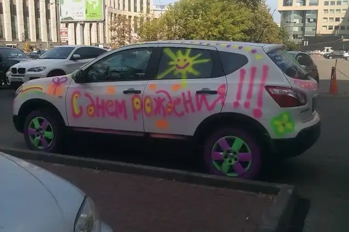 возможно, эта краска легко смывается водой. А машина - это подарок.