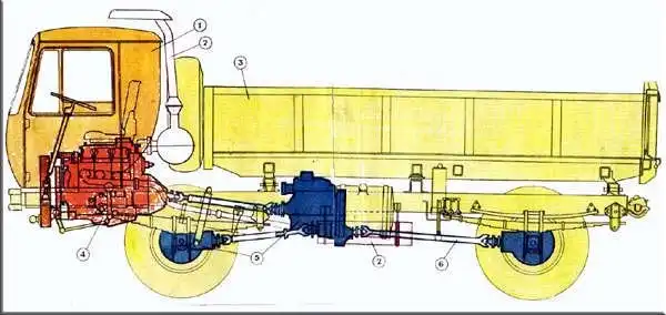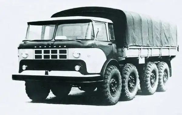 Коробка передач была отделена от двигателя — ее демонтаж и ремонт стали значительно легче. Еще одно из новшеств, которое впервые было применено в СССР, — дисковый шарнир равных угловых скоростей (более надежный, чем сферический). При максимальной скорости 80 км/ч грузоподъемность машины составляла 6000 кг.