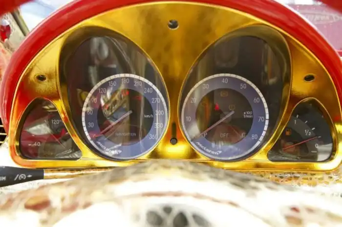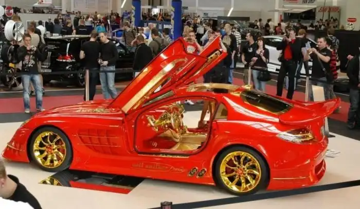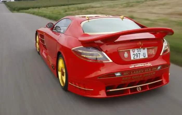 Швейцарский бизнесмен решил тюнинговать свой спортивный автомобиль Mercedes McLaren SLR и для этого нанял целую бригаду работников. В общей сложности 35 человек потратили на доработку автомобиля 30 тысяч рабочих часов, чтобы в итоге получился этот автомобиль, названный McLaren SLR 999 Red Gold Dream.