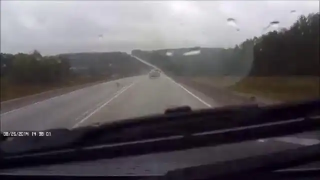 На днях в Республике Татарстан на 21 километре автодороги "Казань - Шемордан" произошла жуткая авария легкового автомобиля с грузовиком, которая была заснята на видеорегистратор случайным очевидцем трагедии. По неизвестной причине водитель Chevrolet Lacetti не справился с управлением, из-за чего автомобиль пошел юзом на мокрой дороге и вылетел на встречную полосу, по которой ему на встречу двигался самосвал Volvo. У двоих мужчин, которые находились в легковом авто, не было ни единого шанса в этой жуткой аварии.