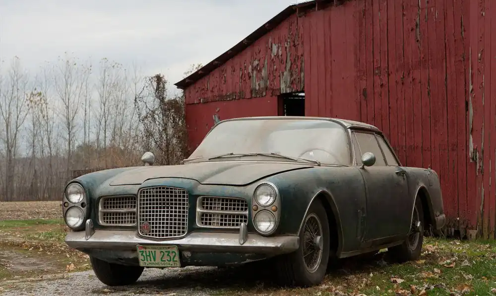 Facel Vega Facel II 1962 года выпуска, был экспортирован из Франции и продан покупателю из Нью-Йорка. Поменял двух владельцев и каким-то образом оказался в деревянном амбаре в штате Миннесота, где и простоял все это время. На одометре всего 31 152 мили. Был продан с аукциона за 209 509 долларов.