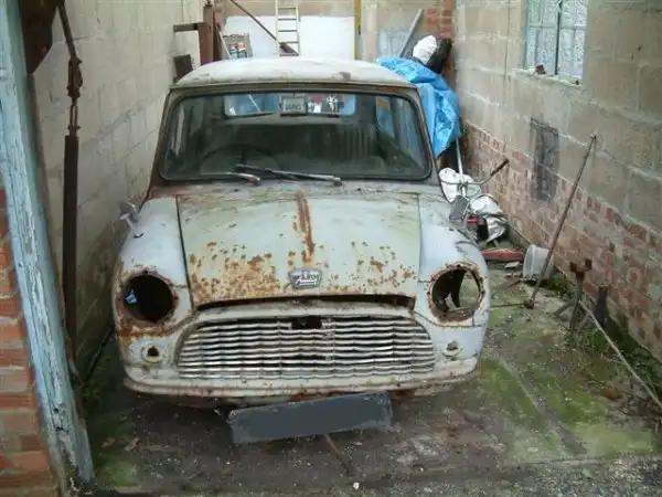 Austin Se7en 1959 года выпуска, которая много лет ржавела в одном из гаражей в Англии. Когда ее в 2011 году за 11 000 фунтов купил редактор автомобильного сайта, то его сочли просто сумасшедшим. Но оказалось, что это одна из первых Мини в мире (сохранилось только 3 машины, которые были выпущены раньше) и старейшая из нереставрированных.