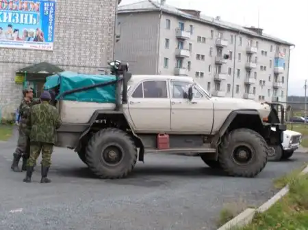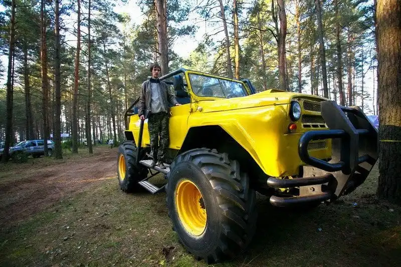 Двигатель от фуры Scania, кузов от УАЗа, база ГАЗ 66 и кожаные электро-сиденья с обогревом от BMW - это лишь краткий список того, из чего механики клуба "Беловежские зубры" собрали своего монстра.