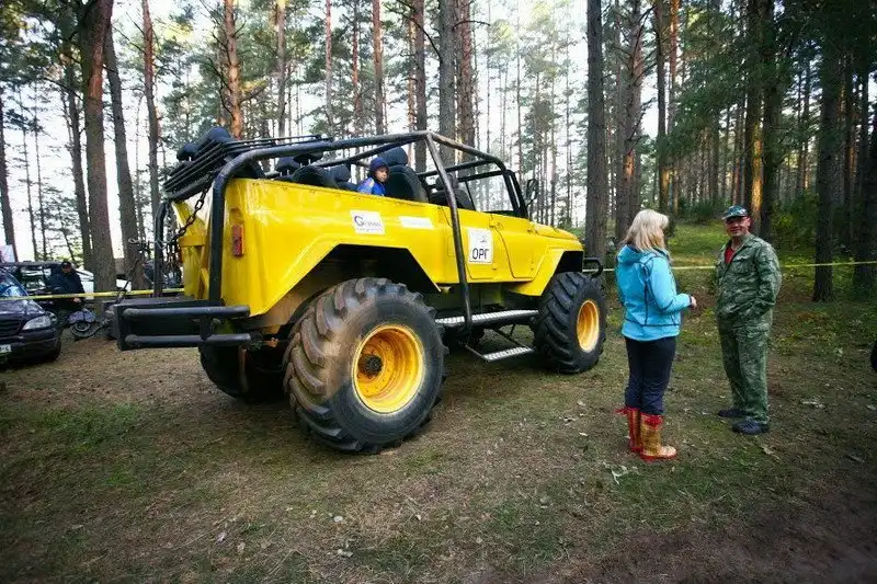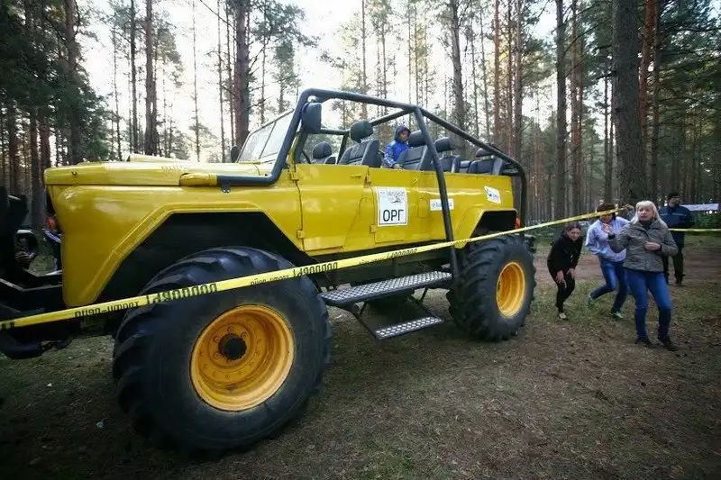 Впервые внедорожник показали на трофи-рейде "Паплавы 2014", который прошел 18-21 сентября возле беловежской деревни Новый двор в Гродненской области. Джиперы со всей Беларуси, а также из России, сразу же заинтересовались монстром.