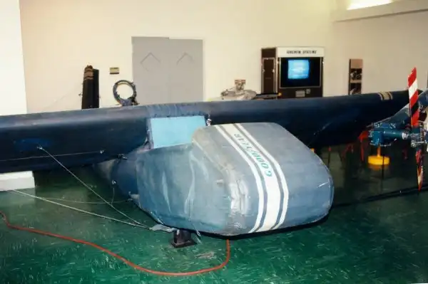 Фокус в том, что новый конструктив под названием «Эрмет» — не просто надувная оболочка, а объемная силовая структура! Между стенками камеры располагается натянутая (в наддутом виде) нейлоновая сеть, которая распределяет нагрузку так, что даже длинные надувные балки идут на аккуратный изгиб, а не ломаются в точке приложения внешнего давления. Именно поэтому наддутое до скромной величины в 170кПа (1.7атм) многометровое крыло не проявляет никаких поползновений к складыванию, да и стойка с двигателем нисколько не изламывает фюзеляж. Честно говоря, в особо напряженных на растяжение местах заделаны еще и стальные тросики.
