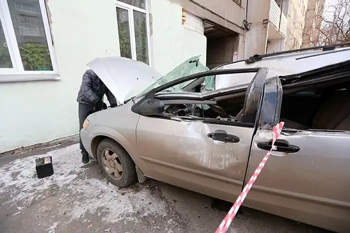 В Красноярске на автомобиль упала 250-килограммовая плита