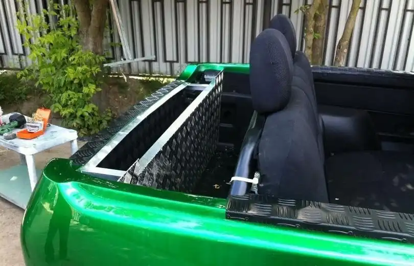 "К каждой фотке писать лень поэтому в вкратце все тут. Купили «нива остатки» за 15000 рублей. Полностью разобрали, зашкурили и проварили. Перебрали подвеску, армировали трубой 150 мм по кругу 2-йным контуром + дуги. Подвеска вся новая, двигатель перебрали, салон весь новый 2 передних сидения от мазды 3 остальное родное. На круг с покупкой пепелаца обошлось 250000 рублей. Когда начинали не знали что хотим но понимали что для перевозки лодки!"