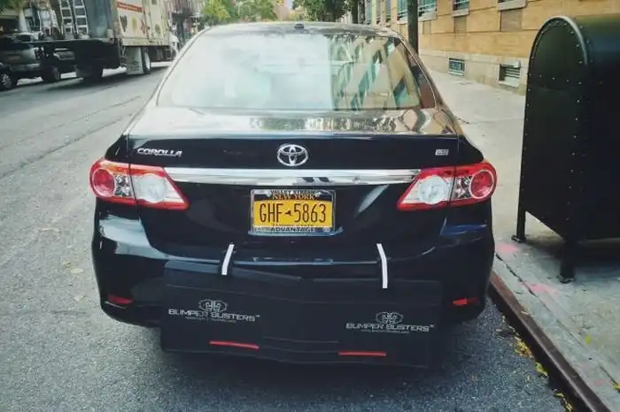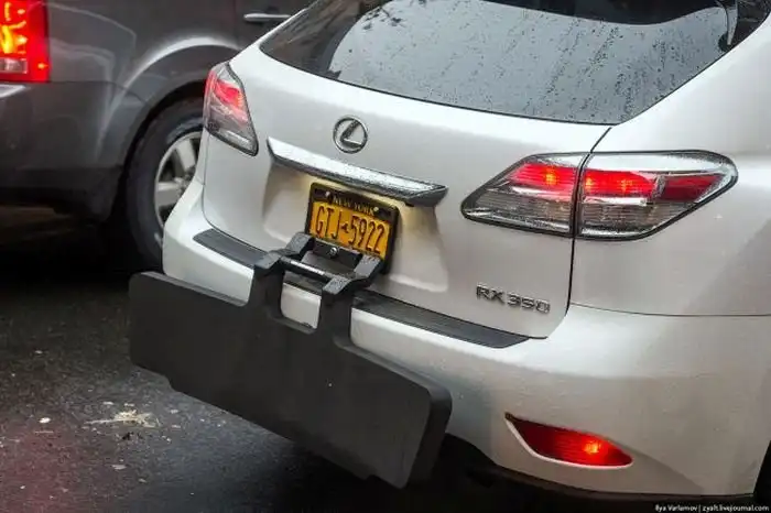 В Нью-Йорке место для парковки найти довольно тяжело, а если его все же удается отыскать, то въехать в него порой весьма проблематично. Отсюда и появляются царапины на бамперах автомобилей, избежать которых помогают нехитрые защитные приспособления, которые возят с собой местные автомобилисты.