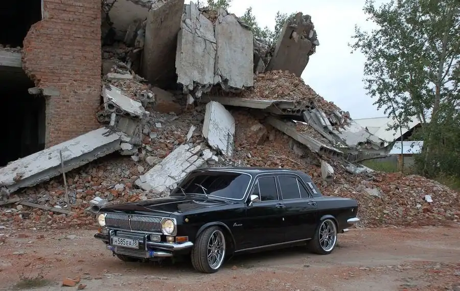 Как все же может преобразить машину низкая посадка и эффектные легкосплавные колеса! Мечта мелкого советского функционера и простого гражданина, в духе времени возвышавшаяся над землей подобно нынешним кроссоверам, теперь выглядит по-современному стильно — будто новая модель, создавая которую дизайнеры вдохновлялись прошлыми заслугами предприятия. Среди автопроизводителей такое не редкость. Но нет, с точки зрения экстерьера перед нами обычная «баржа» 1982 года, хотя столь обидное прозвище ей, конечно, уже не подходит. Образ изменился кардинально. Да и техническая начинка отметает всякие ассоциации с медленным речным грузовиком. Идейный вдохновитель постройки и хозяин машины — Абдула Дибирдадаев — говорит, что, «наверное, это Черный гром».