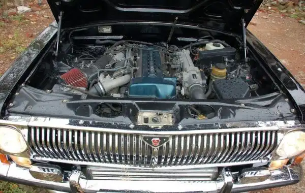 2JZ шедевр не только с точки зрения сочетания мощности и надежности — просто выглядит красиво. Тем более в моторном отсеке ГАЗ-24. Было решено его никак не «бодрить», только «нулевик» появился — тоже отчасти из-за «визуального эффекта»