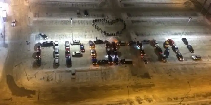 В Сургуте автомобилисты из группы «Взаимопомощь на дорогах БОРТ86» помогли одному жителю города оригинальным способом помириться с женой. Из 45 машин участники флешмоба составили слово «Прости!», прямо под окном квартиры семейной пары, отношения которых были на грани разрыва. Инициатива появилась на одной из соцсетей и меньше чем за сутки собрала необходимое количество машин. В итоге девушка простила своего мужа, и они под восторженные крики участников флешмоба «Горько» поцеловались.