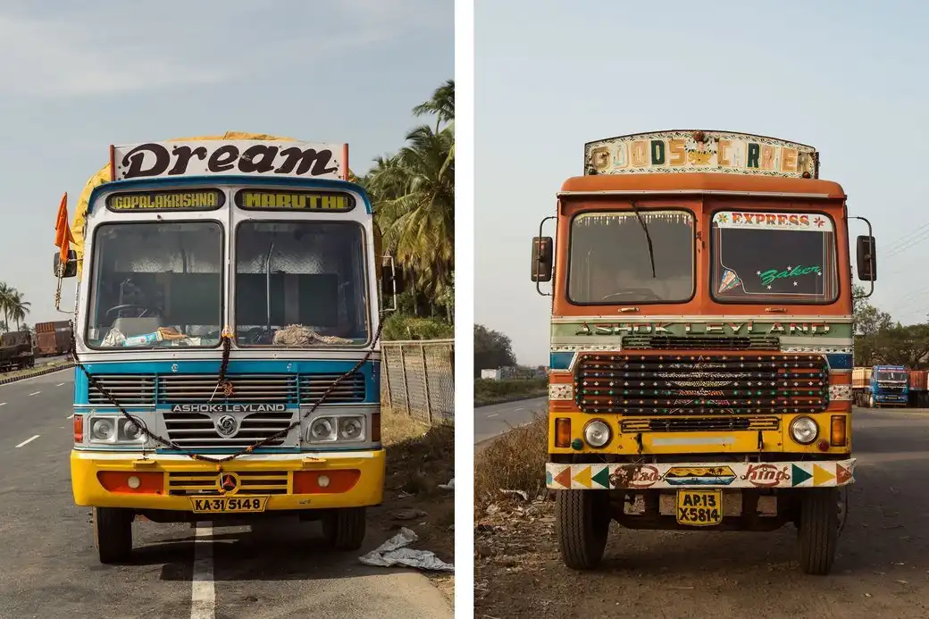 На индийских дорогах, как известно, творится настоящее безумие. Туда одновременно стекаются автомобили, рикши, велосипеды, повозки и даже стада животных. Среди этого многообразия особенно выделяются грузовики — прежде всего благодаря своему яркому и необычному внешнему виду. Фотограф Дэн Экстайн так вдохновился грузовиками и их владельцами, что посвятил им целую книгу .