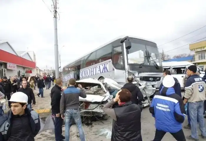 По одной из версий у грузовика отказали тормоза, поэтому он, проехав на красный сигнал светофора, столкнулся с двумя маршрутками, автобусом, двумя грузовыми авто и легковыми машинами. В результате ДТП скончался водитель автомобиля ВАЗ, трое пострадавших, в том числе водитель неуправляемого грузовика, доставлены в больницу. В настоящий момент ведется выяснение всех обстоятельств массовой аварии.